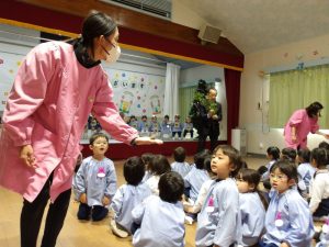 最後には、サンタさんの格好をした先生が12月生まれのお友達にお誕生日ケーキを持ってきてくれました![]()