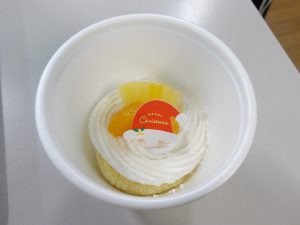 サンタさんの帽子と果物がのったクリスマスケーキでした![]()