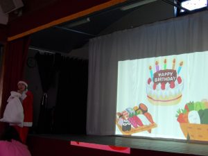 最後には、サンタさんの格好をした先生が12月生まれのお友達にお誕生日ケーキを持ってきてくれました![]()