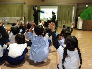 JR橋本駅の運転士さん、車掌さんが幼稚園に来てくれました![]()