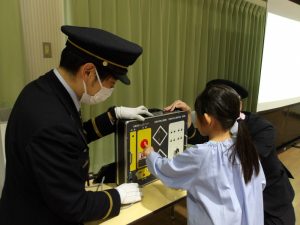 ホームの下の落し物を拾う時に駅員さんが実際使っている【マジックハンド】で物を掴む体験をしたりしました![]()