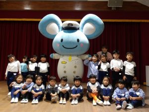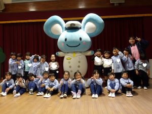 サプライズ登場した横浜線のマスコットキャラクターの【ヨコハマウスくん🐭】に大興奮❣
