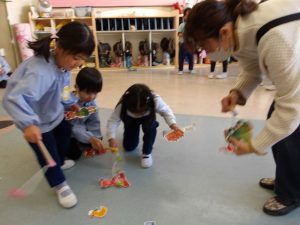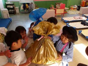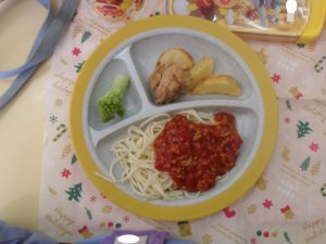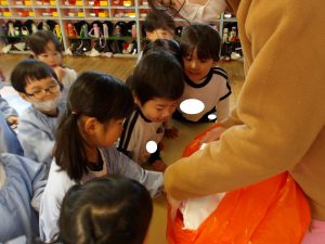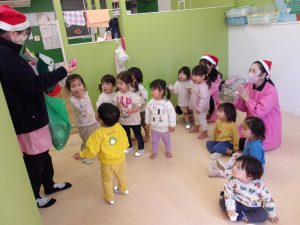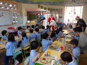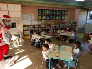 給食を食べていると…なんとサンタさんの格好をした…園長先生サンタさんが登場!