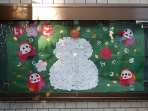 1月といえばお正月!先日幼稚園でもちつきを体験した子どもたち…お正月はどんな行事なのか考えながら制作を行い、お正月をイメージさせる掲示板が出来上がりました![]()