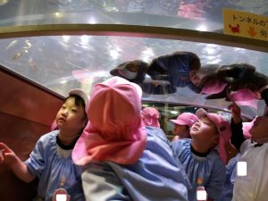 友達とワイワイ話しながら水槽をのぞき込んでいました![]()