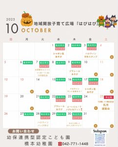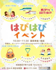 10月地域子育て広場『はぴはぴ』の予定表です