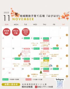 11月地域開放子育て広場『はぴはぴ』の予定表です