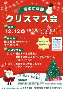 参加してくれたお子さんには、サンタさんから素敵なプレゼントもありますので、参加お待ちしています![]()